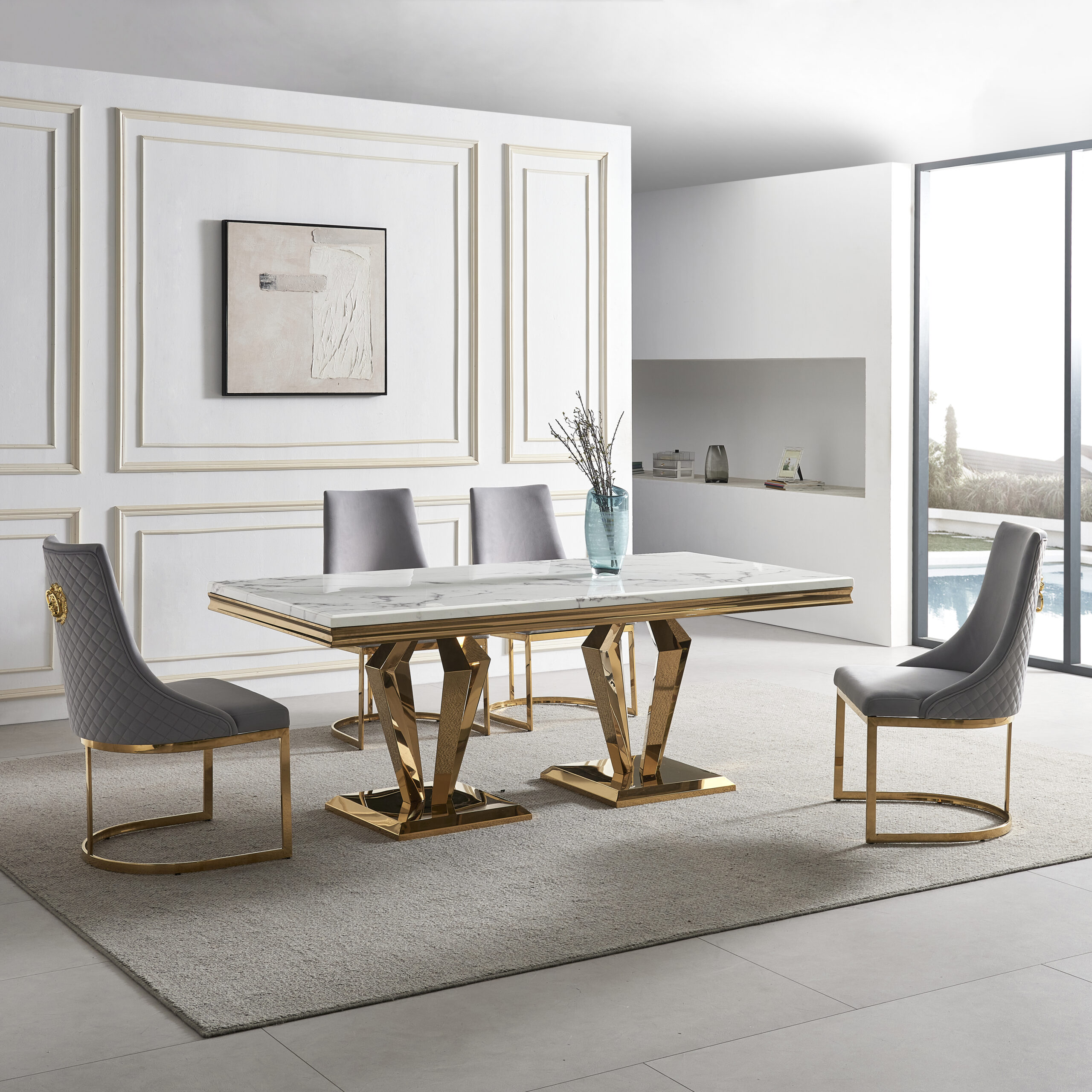 PUMPKIN SJ1066 WHITE MARBLE TOP + GOLD BASE 200*100*75